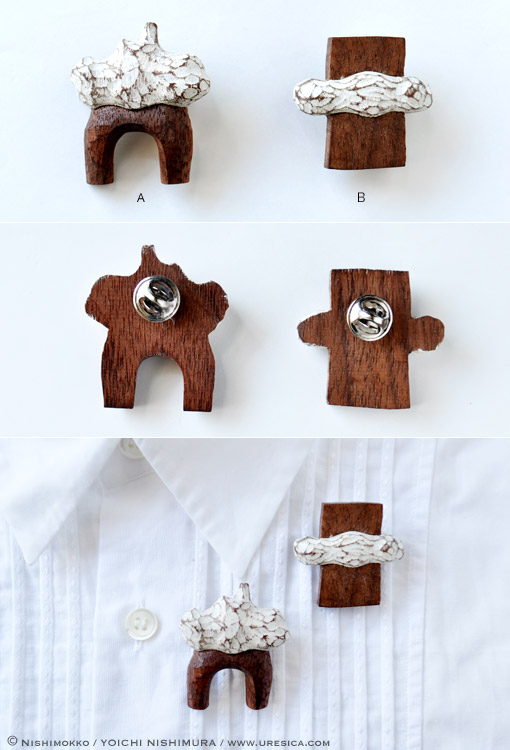 福岡在住の木彫作家nishimokko西村洋一さんの「ゆげる」シリーズよりピンバッジ。