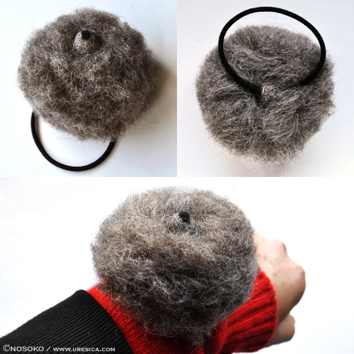 のそ子さんハンドメイドの一点物、羊毛フェルトのいぬヘアゴムです。