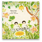 絵本「チリとチリリ」のレターセット。チリとチリリの小さな姉妹が緑の中を自転車で走ります。