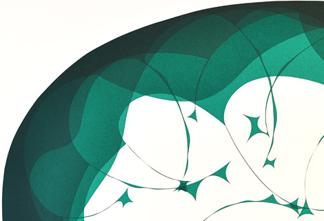 左:多色版の重なりとグラデーションが美しい「ふるえる涙」「光を孕んで」