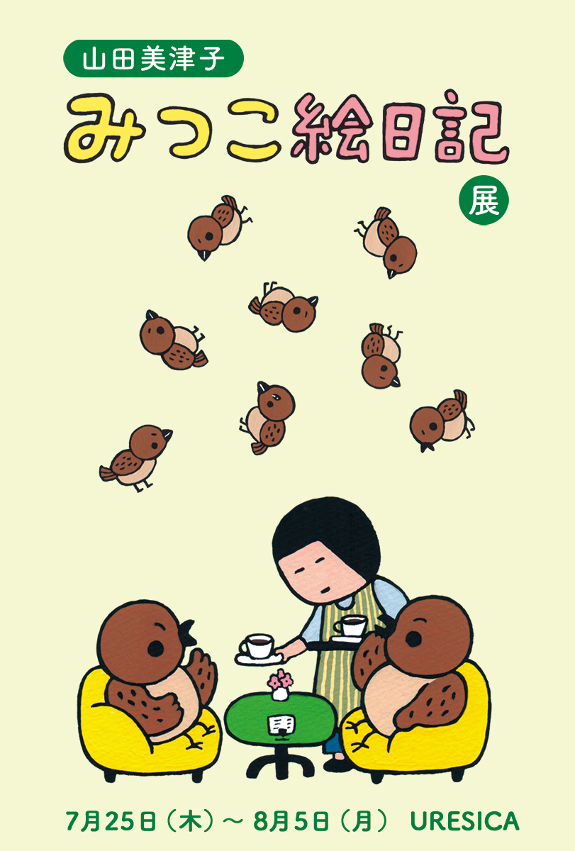 ![]() しんよんひ 個展「雨の音」![]() しんよんひ 個展「雨の音」 2019年 9月5日(木)〜16日(月) 休み(close):10日(火)、11日(水) 営業時間(open):12時〜20時 印象的な色彩と登場人物たち。どこにもない世界を見せてくれる画家しんよんひさん。 新作・旧作のオリジナル絵画作品をはじめ、立体作品なども展示販売します。 自作絵本「みずうみ」、紙ものグッズなども販売予定。 作家在廊予定 土曜:12時〜15時 日曜:14時〜18時 月曜:15時〜20時 しんよんひ 1980年、韓国・ソウル出身。埼玉県在住。 梨花女子大学卒業後、秋田県で3年間国際交流員を務める。 絵本作家を志し、2012年からあとさき塾の第22期生となる。 日々絵本制作に励みつつ、展示などで活動中。 youngheeshin.com nakaban x 植田真「公開制作とトーク」![]() nakaban x 植田真「公開制作とトーク」 日時:2019年 9月1日(日)14:00〜 登壇:nakaban、植田真 植田真さんとnakabanさんが互いの物語に絵を描いた絵本『とおいまちのこと』と『みなとまちから』(佼成出版社)発売から3ヶ月経ちあらためて、2冊の絵本が生まれるまでの5年間について、作者おふたりに語っていただきます。合作のライブ制作、初期習作合作群(未発表)の公開。ダブルサイン本(スリーブ入り)もご用意いただきます。 《TALK》 『みなとまちから』『とおいまちのこと』2冊の絵本制作5年間のはなし。 互いの物語に絵を描くということ。絵画的対話・コラボレーションのおもしろさ。 広島・神戸、それぞれのアトリエのこと。 《LIVE》 合作作品の公開制作。 《VIEW》 初期習作合作群(未発表)の公開。 ![]() nakaban 1974年 広島県生まれ。画家。 旅の記憶を主題とし、絵の中を旅するように風景を描き続けている。また音楽家のトウヤマタケオと「ランテルナムジカ」を結成し各地でライブを行う。2013年には新潮社の「とんぼの本」のロゴマークを制作。近年は絵本を数多く発表。主な作品に「よるのむこう」(白泉社)「ころころオレンジのおさんぽ」(イースト・プレス)「みずいろのぞう」(ほるぷ出版)「ぞうのびっくりパンやさん」(大日本図書)「うみべのいす」(佼成出版社)他多数。 nakaban.com 植田真 1973年生まれ。「イラストレーション」誌「ザ・チョイス」第15回年度賞大賞受賞。書籍装画・挿絵、広告などのイラストレーションや絵本のほか、ギターを用いた即興音楽など幅広く活躍。絵本に「スケッチブック」(ゴブリン書房)「マーガレットとクリスマスのおくりもの」(あかね書房)「まじょのデイジー」(のら書店)「落日と風のこと」(silentphase B)「おやすみのあお」(佼成出版社)「ぼくはかわです」(WAVE出版)他多数。 silentphase.com たけがみたえ「きょうは泣き虫」「うみのあじ」絵本原画展![]() たけがみたえ「きょうは泣き虫」「うみのあじ」絵本原画展 2019年 8月8日(木)〜19日(月) 休み(close):13日(火)、14日(水) 営業時間(open):12時〜20時 注目の若手作家たけがみたえ(竹上妙)さんが初めてお話の創作を手がけた 『きょうは泣き虫』(好学社)と『うみのあじ』(あかね書房)2冊の原画を展示します。 生きのいい木版画で生き物たちを鮮やかに描きだします。 描き下ろし小作品、グッズ、サイン本の販売もいたします。 《hako BAR 泣きむSea》 日時:8月12日(月祝)18時ごろ〜20時ごろまで 会場:ウレシカ2階ギャラリー hakoママとたえチーママによる一夜だけのBAR「泣きむSea」 絵本にちなんだおつまみと飲み物をご用意します。(キャッシュオン) 鮮やかな絵本原画を見ながら、夏の夜をご一緒に楽しみましょう。 どなたさまもお気軽にお立ち寄りください。 たけたみたえ(竹上妙) 1986年東京生まれ。 Mokuhanger(木版画作家) 和光大学表現学部芸術学科卒業。2008年より個展、グループ展を中心に活動。 長野で牛にかこまれた時の衝撃から生きものと目が合った瞬間「見たら見られた」をテーマに木版画を制作している。絵本に『マンボウひまな日』(絵本館)、『ふくろうのオカリナ』(蜂飼耳 作/理論社)、『きょうは泣き虫』(好学社)、『うみのあじ』(7月刊行/あかね書房)がある。 takegami-tae-hanga.jimdo.com 山田美津子「みつこ絵日記展」![]() 山田美津子「みつこ絵日記」展 2019年 7月25日(木)〜8月5日(月) 休み(close):30日(火)、31日(水) 営業時間(open):12時〜20時 自然、動物、子ども、日々の暮らしを独自のユニークな目線で切り取る。 山田美津子さんがウェブサイトで長年発表している「みつこ絵日記」をずらり展示します。 個展にあわせ『よりぬき みつこ絵日記』をURESICAより刊行します。 ◎作家在廊予定 25(木)・26(金)だいたい終日(一時、外出する時間もあります) 28(日)12:00〜16:00 ![]() ◎同時開催: 山田美津子『かぜ かぜ かぜ』原画展 『かぜ かぜ かぜ』(こぐま社) 「みつこ絵日記」にもよく登場する風。だれのそばにも風はいます。自然のなか、暮らしのなかに、風を感じて一緒に遊びたくなる絵本です。 1階展示スペースにて絵本原画を展示、サイン本を販売いたします。 《朝散歩&ワークショップ》 みつこさんと朝散歩「ニセみつこ絵日記」をつくろう 日時:7月28日(日) 9